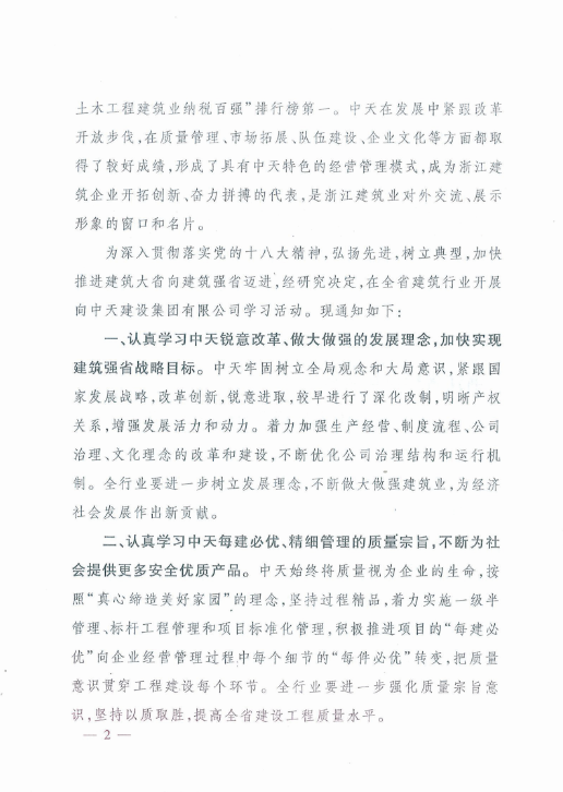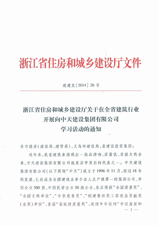 《浙江省住房和城乡建设厅关于在全省建筑行业开展向yh86银河国际建设集团有限公司学习活动的通知》